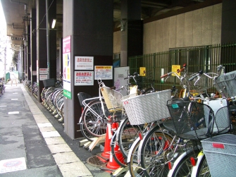 高架下の駐輪場は100台分が工事範囲内となり営業中止していて、半分ほどだけ稼動しています。