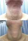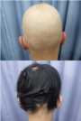 上の写真は初診時、下の写真は11ヵ月後ですが、この方は1年くらいで来られたので、重症型の全頭脱毛にしては回復が早いです。治療開始までの時間が長いと産毛が出てくるまでに1年かかる場合もあります。