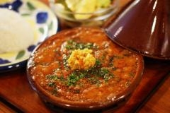 料理の数々。お水が貴重な地域にあるお野菜やお肉からの水分を上手に使ったスパイス料理!当店での代表的料理である「クレオパトラ☆タジン」にはお約束であります!