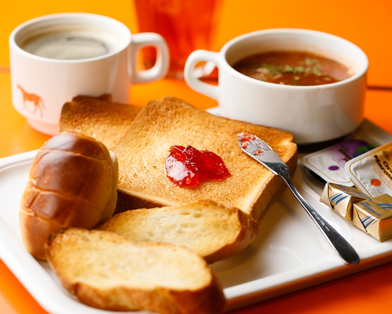 美味しいトーストとロールパン、コーヒー、紅茶、