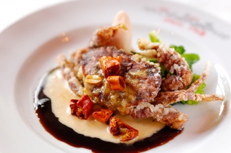 いち早く取り入れたのがキャンティです。今では一番人気の料理になりました。カリッと芳ばしい衣の中にカニの旨みが凝縮され、それを丸ごと全て味わい尽くすことができる。なんて贅沢な一品なんでしょう。