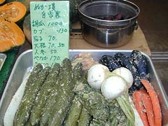 当店では、野菜の鮮度を保つために、ニラやハスなど店頭に並べていない野菜もありますので、見あたらない野菜がありましたら遠慮なく声をかけてください。