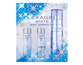 人気の美白美容液 エクサージュホワイト「ホワイトジェネレート」3月18日 ジェネレート美容液に「ヒュアホワイトミルク30g」と「ホワイトアップローション30ml」そして「フェイシャルコットンL10枚」の3品をセットにしたキットが限定発売されます。予約受付中 !夏に向けてクリアな明るい素肌に・・・。