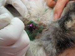 局所麻酔下でレーザーによる皮膚腫瘍の切除、凝固術をしています。