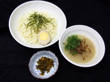 醤油など調味料の味を強くしてしまうとスープの旨味が薄れてしまうため一般的なつけ麺より味がしょっぱくありません。麺に味がじゅうぶん絡むよう「細麺」を使用しているので麺のコシもたのしめます。濃い味のつけ麺が苦手な方にもオススメです。