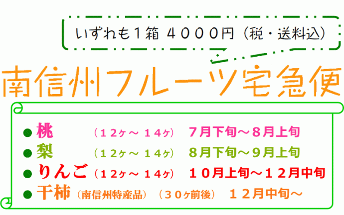 中央アルプスと南アルプスに挟まれた南信州は、日当たりが良く、 昼夜の寒暖差があり、日照時間が長く、果樹栽培に適した地域です。南 信 州 の 自 然 の 恵 み を ご 賞 味 下 さ い 。直営農場よりお届け致します。贈答用にもご利用ください。