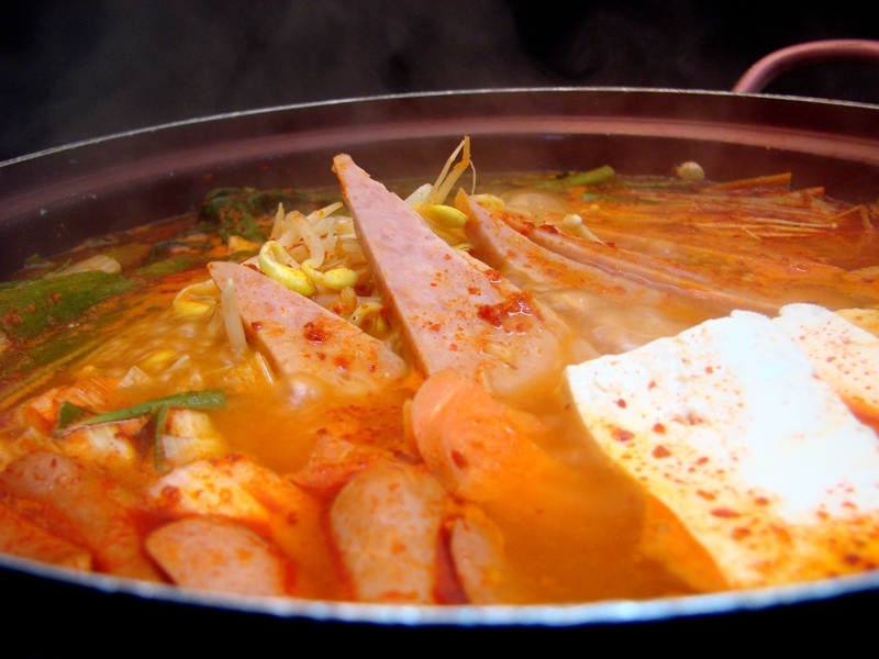 プデチゲ(部隊鍋)スパム、ソーセージ、野菜など具だくさん