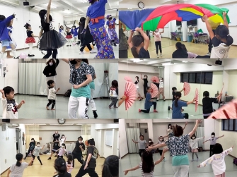普段は別々のクラスですが、発表会やイベント前には、キッズ、Jrの合同練習をする事もあります。