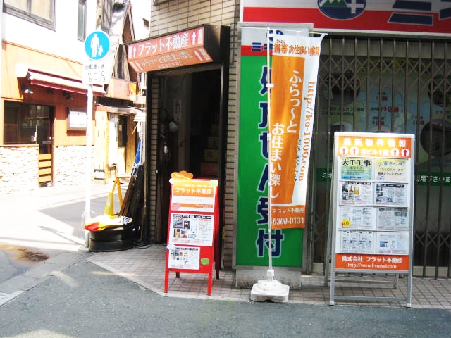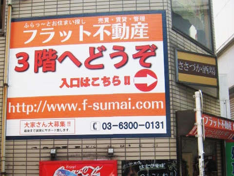 京王線笹塚駅 改札口を出て左へ、つまり北の方向に甲州街道に向かって1歩.2歩.3歩.4歩.5歩...上を向いたら目の前にありました❣ フラット不動産!駅改札を出て10歩も進んだかな?超近でーす!一度来てみてください。