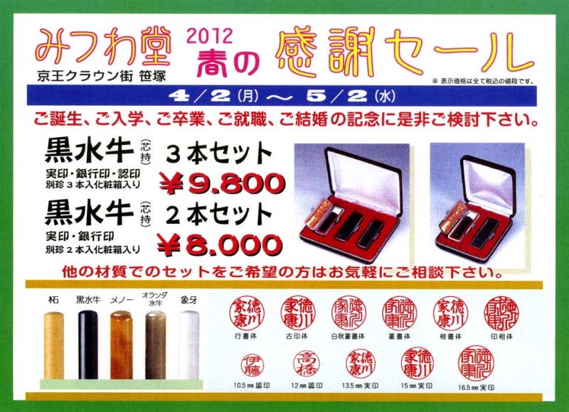 印鑑(はんこ・実印・銀行印)、ゴム印、印刷(名刺・ハガキ・封筒)ご注文に技術と誠意でお答えします。