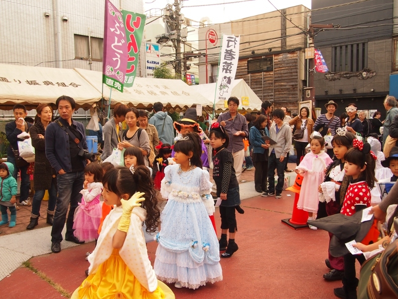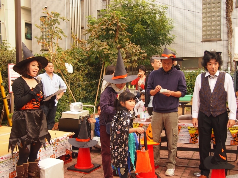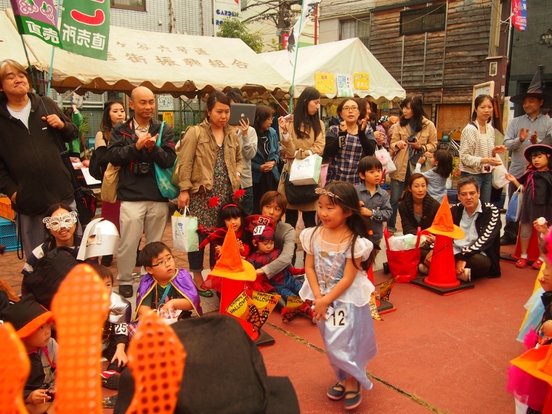 大人も子供も仮装した人がいっぱい!子供たちはお菓子をもらいに商店街のお店をまわっていました!