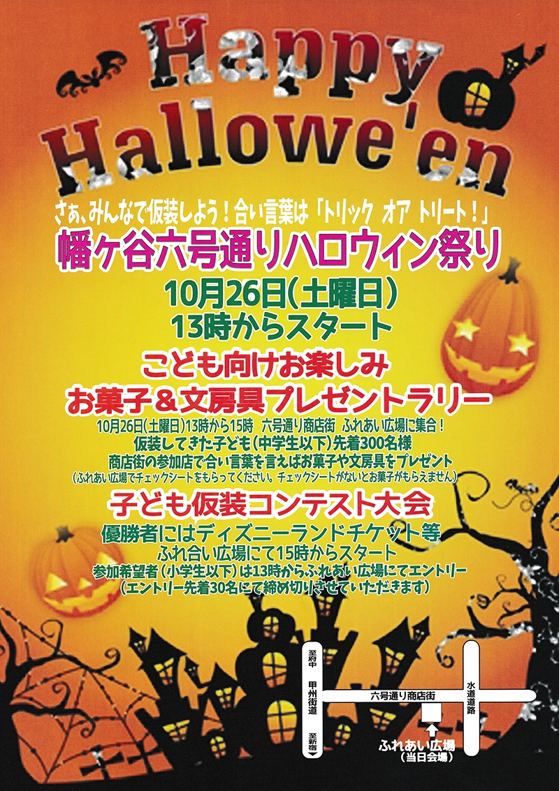 10月26日(土)13時から 幡ヶ谷六号通りハロウィン祭り開催!!