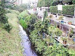 商店街を通り抜けると、玉川上水旧水路跡が見えてきます。玉川上水は、多摩川から取水する人工水路です。江戸時代の承応2年(1653年)に開削されました。 この付近は、その開渠部分が残っています。