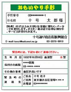 カードに名前や住所が記入できますので、お買い物中に具合が悪くなってしまった場合など、お店の人による対処が可能です。安心してお買い物いただけます。